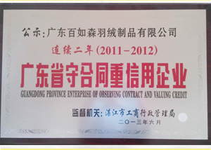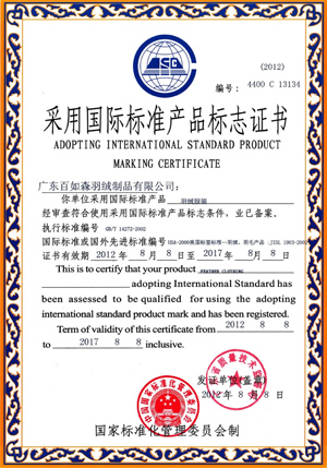 中国羽绒制品荣誉保证